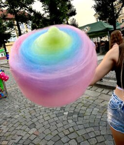 Nejsladší a nejbarevnější cukrovou vatu a popcorn najdete na stánku Candy Floss.